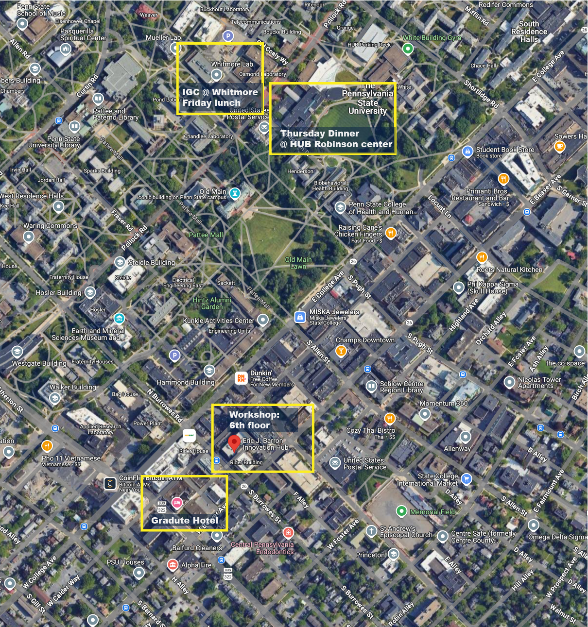 On thursday, we wil have the banquet dinner in Rm. 233 A&B, the HUB Robinson Center. The room will be open from 5pm.